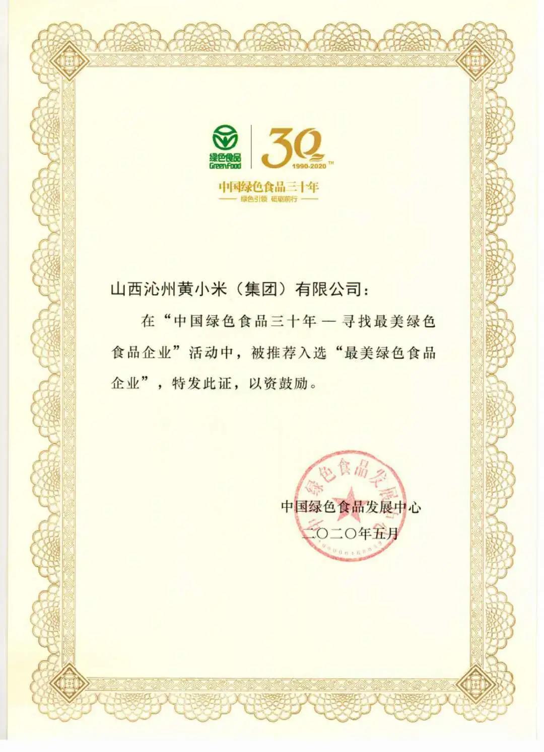 山西沁州黃小米集團入選“最美綠色食品企業”